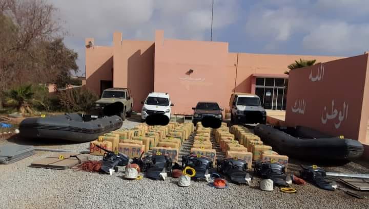 وذكر بلاغ للمديرية العامة للأمن الوطني أنه تم تنفيذ هذه العملية الأمنية بمدينة العيون، ومكنت من توقيف المشتبه فيه والعثور بداخل منزل يستغله على 42 رزمة من مخدر الشيرا بلغ مجموع وزنها طنا و381 كيلوغراما، علاوة على حجز سيارة رباعية الدفع وجهاز اتصال عبر الأقمار الاصطناعية وثلاثة قوارب مطاطية يشتبه في استعمالها في تنفيذ عمليات التهريب الدولي للمخدرات.