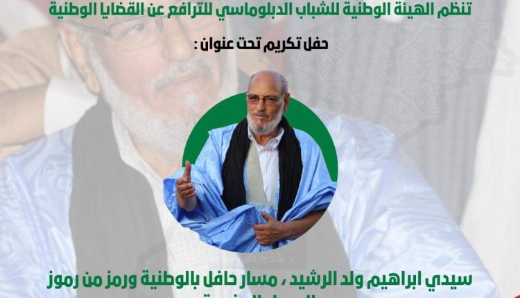 نظمت الهيئة الوطنية للشباب الدبلوماسي للترافع عن القضايا الوطنية بحضور عدد من الشخصيات الوازنة حفل تكريم للسيد سيدي ابراهيم ولد الرشيد ، وذلك اعترافا له بمجهوداته الوطنية في خدمة العرش العلوي المجيد لسنوات عديدة ، كما دوره الفعال في اصلاح ذات البين ولم شمل القبائل الصحراوية المغربية ، إذ لعب دور الأب الروحي لجميع أطياف أهل الصحراء قاطبة بحكمة وحنكة