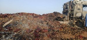 ذات المصادر المحلية تؤكد إلتهام النيران لكامل حمولتها دون أن تخلف خسائر بشرية ، الحمولة هي عبارة عن أطنان من البطاطس.