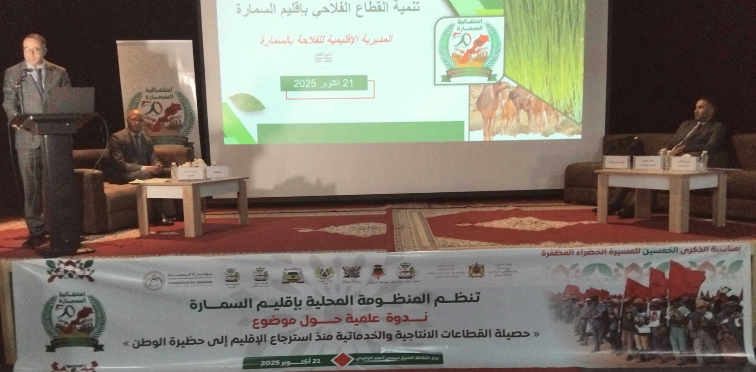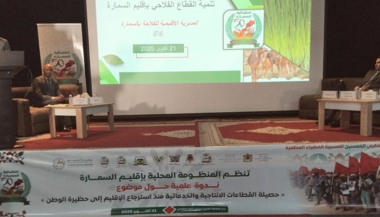 في إطار الاحتفالات المخلدة للذكرى الخمسين للمسيرة الخضراء نظمت المنظومة المحلية بمدينة السمارة بمقر دار الثقافة الشيخ سيدي احمد الركيبي صباح اليوم الثلاثاء 21 اكتوبر 2025 ندوة علمية بعنوان “حصيلة القطاعات الإنتاجية والخدماتية منذ استرجاع الإقليم إلى حظيرة الوطن”.