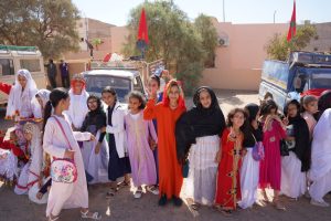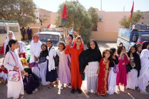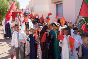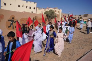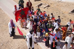 انطلقت الأنشطة صباحًا بحضور إدارة المدرسة وأطرها التعليمية، إلى جانب أولياء أمور التلاميذ، لتشهد المدرسة أجواء حماسية رفعت خلالها الأعلام الوطنية وردد التلاميذ النشيد الوطني وشعارات المسيرة وسط ساحة المدرسة التي تم تأثيثها بالخيام والشاحنات القديمة والسيارات التي شاركت في نقل المشاركين في المسيرة الخضراء قبل خمسون سنة .