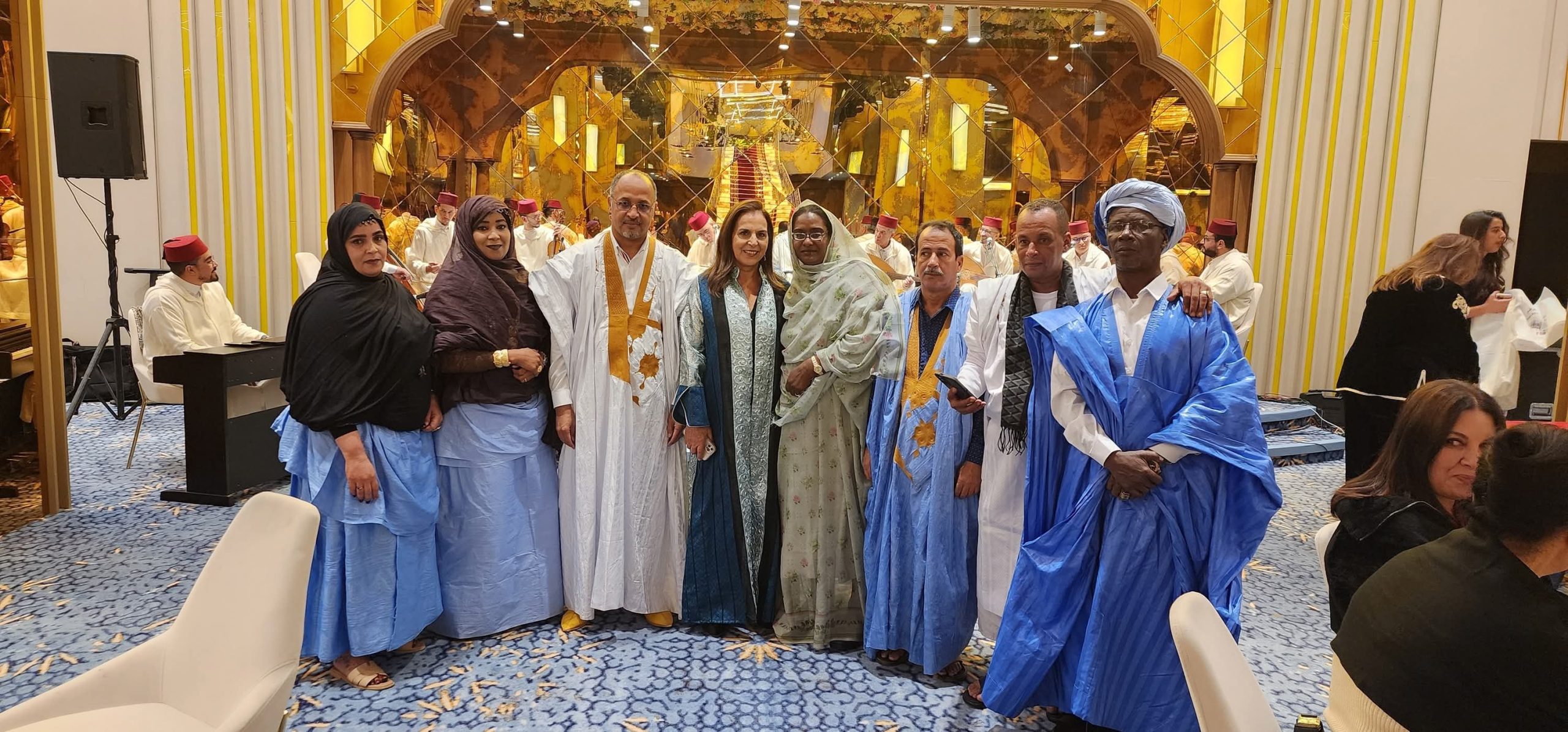 الوفد الذي ترأسه محمد محمود بيلال رئيس جمعية السمارة للتراث والتنمية. ومدير مركز التأهيل المهني في فنون الصناعة التقليدية بالسمارة وعضو الأكاديمية الدولية للتراث اللامادي والخبير في الثقافة الحسانية. ويضم الوفد : ويضم الوفد ايضا : عبدة احميداها رئيس تعاونية اهل الجيد لتثمين لحم الإبل. ومحمودة اباعلي رئيسة تعاونية اهل اباعلي .واعضاء المجموعة الفنية المتكون من الفنانين : سالم ديحان الاغظف الجنحاوي. محمد بدي. لحبيب الصغير.مولاي سالم اباهدي.توفة .والرباب.
